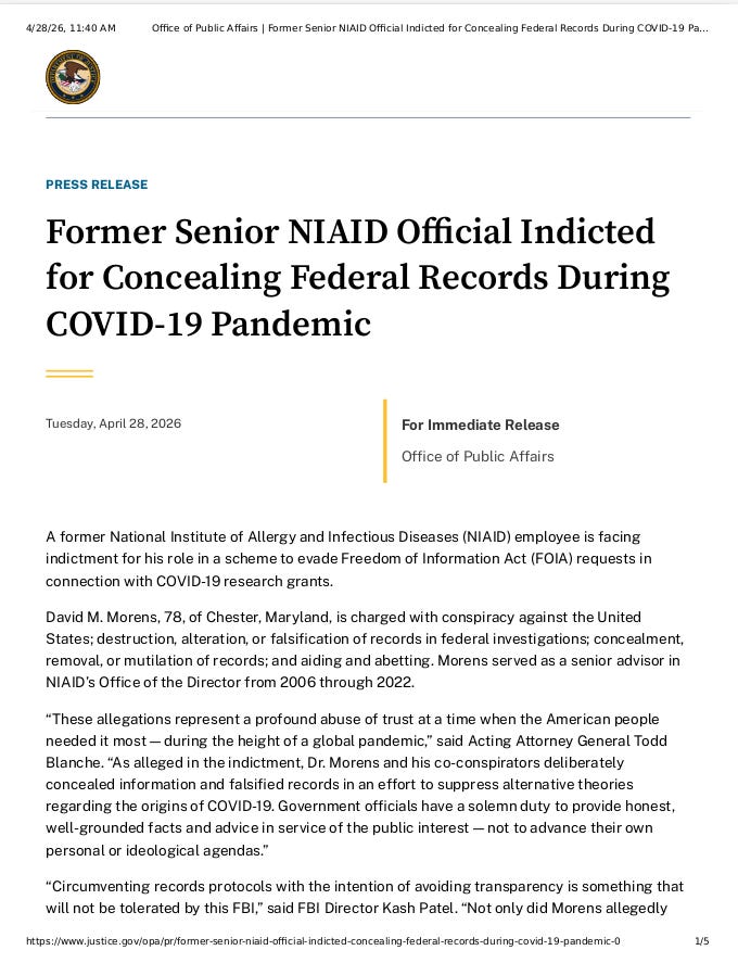 Former Senior NIAID Official Indicted for Concealing Federal Records During COVID-19 Pandemic